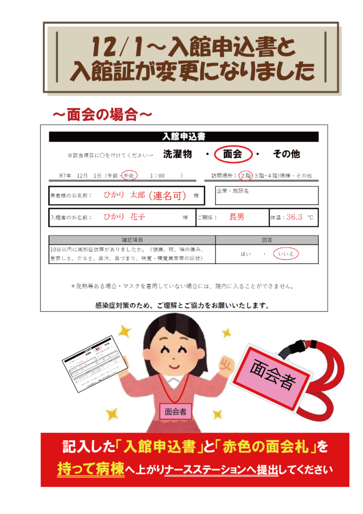 2025年12月1日より入館申込書と入館証が変更になりました。
