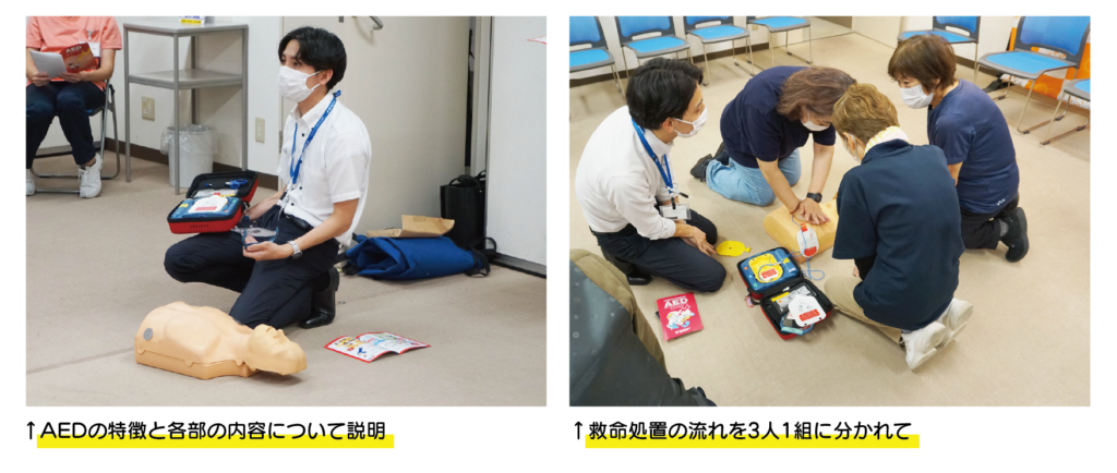 先日、当院で毎年恒例のAED研修を行いました。AED(自動体外式除細動器)は突然の心停停止から命を救うため、痙攣を起こした心臓に電気ショックを与える装置です。心臓マッサージの方法とあわせて、AEDを正しく使用する練習しました。日常の中でAEDを使う場面はそう多くはありませんが、もしもの時に迷わず行動できるように、これからも定期的に研修を行います。